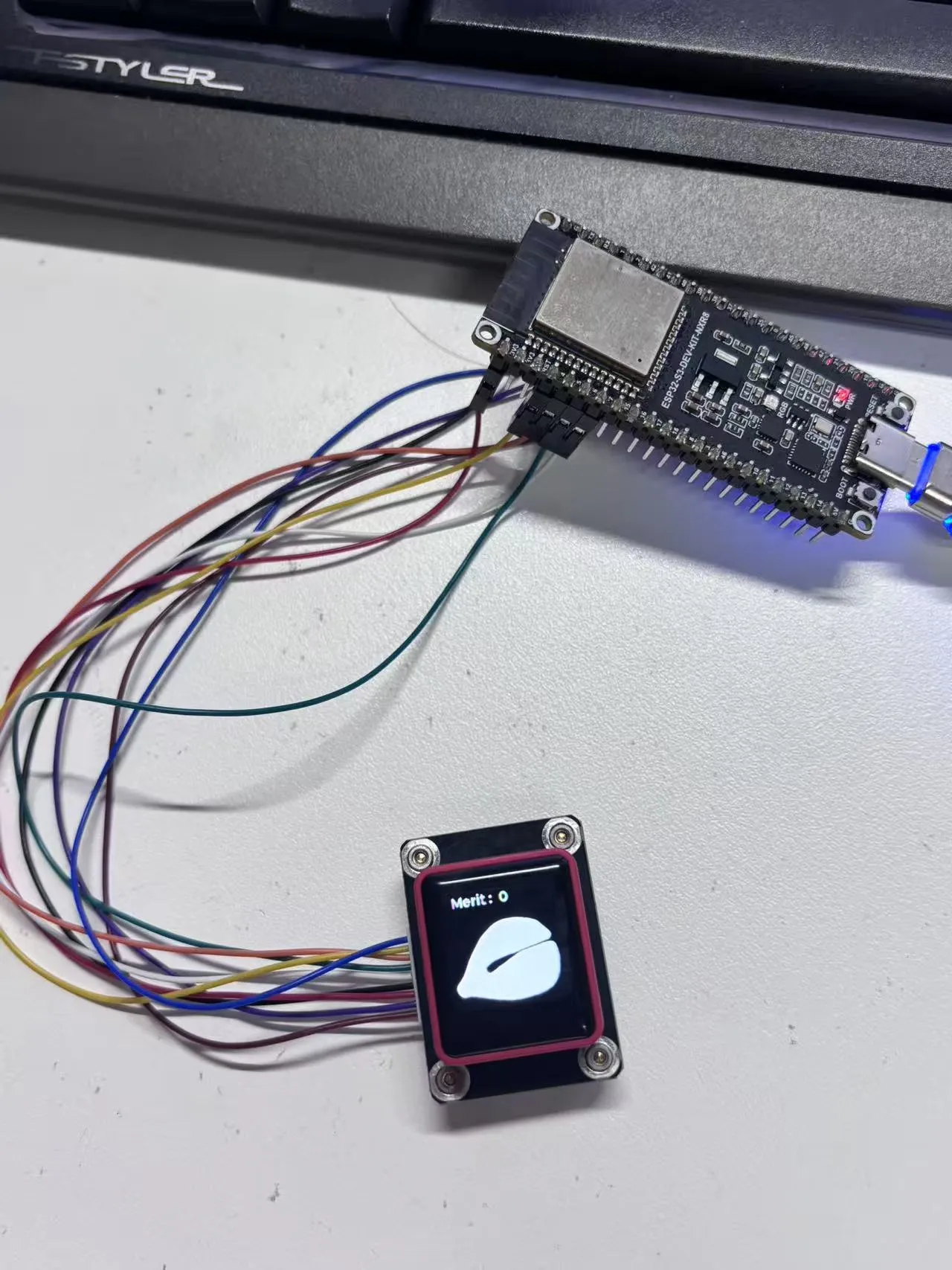- 本示例演示了如何基于 ESP32-S3 开发板驱动 0.85inch ScreenKey Module ,既实现了颜色循环测试与按键功能测试,又预留了基于 LVGL 图形库的图片显示能力,支持通过单击、多击、长按动作完成敲木鱼动态效果。