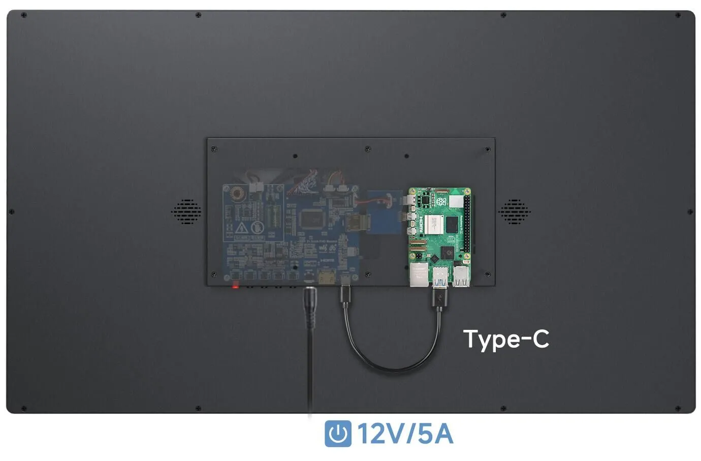- 屏幕接入 12V 5A 电源,等待几秒后即可正常显示