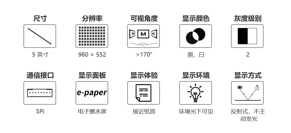 - 无需背光,断电可长时间保持最后一屏的显示内容