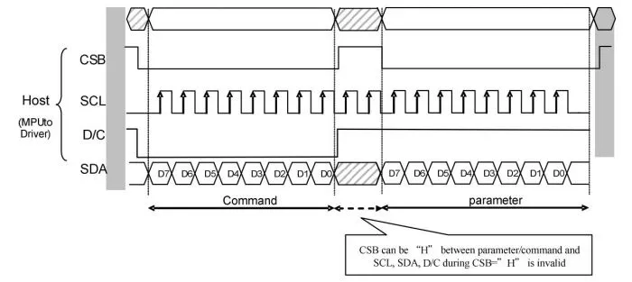 - D/C(DC):数据/命令控制信号,低电平时写入命令(Command);高电平时写入数据(Data/parameter)。