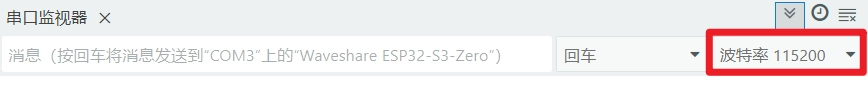 打开串口监视器,将波特率设置为 115200,确保与代码中设置的波特率一致。