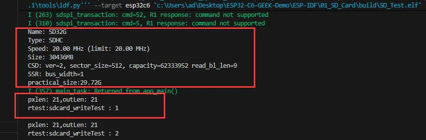 本示例演示了 ESP32-C6-GEEK 测试 SD 卡的读写功能