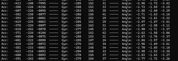 - 本实例演示 ESP32-C6-LCD-1.69 驱动 QMI8658,获取并打印 Accel、Gyro 和 Angle。