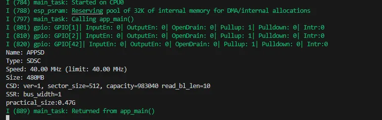 点击串口监控设备,可以看到输出的 SD 卡的信息,practical_size 是 SD 卡的实际容量,如下图所示: