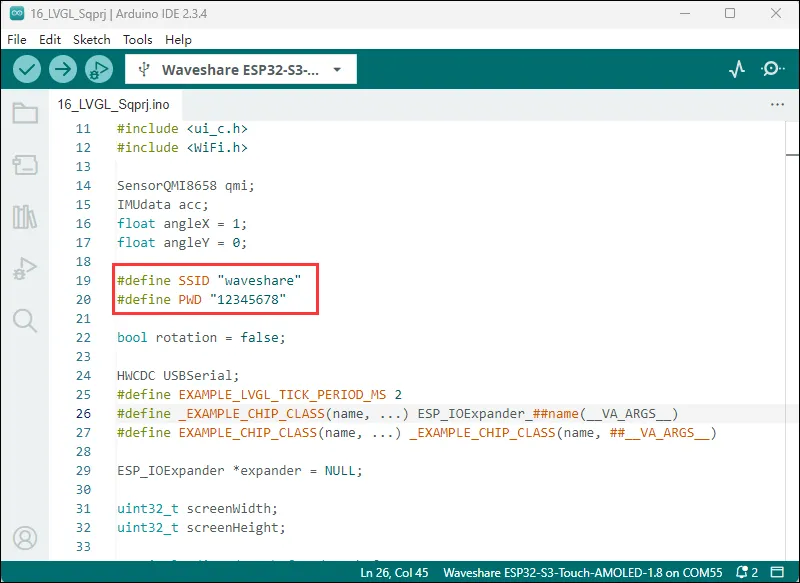 - 本示例演示了 squareline ui 结合 LVGL 示例,使用 QMI8658 传感器实现自适应的屏幕显示方向,通过 WIFI 显示实时时间,通过检测特定区域的触摸输入来改变背光亮度