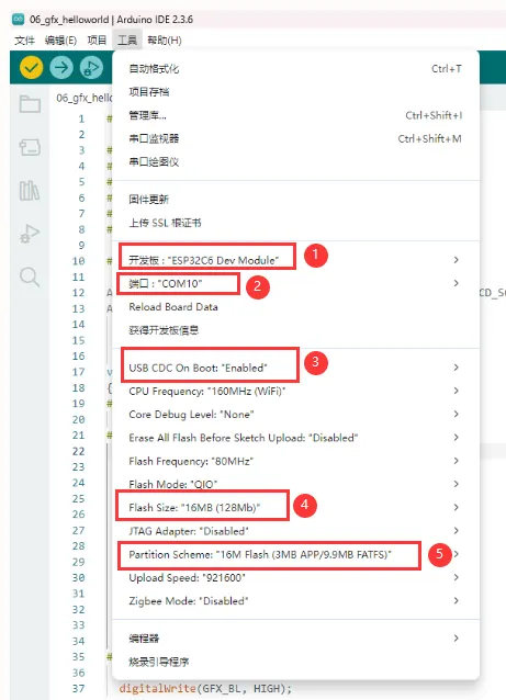 - ESP32-C6-Touch-LCD-1.83 需要选择ESP32C6 Dev Module。