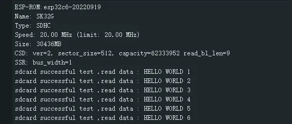 点击串口监控设备,可以看到输出 sdcard 的信息和读写测试,如图: