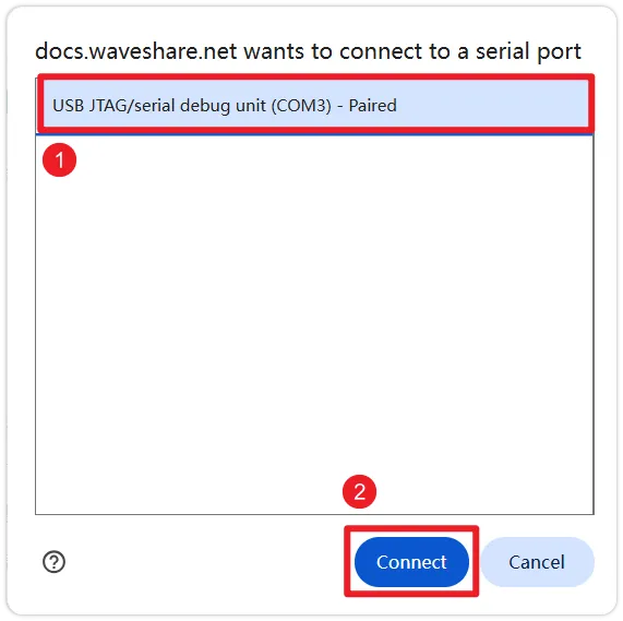 烧录 MicroPython 固件后,设备对应的 COM 端口号可能会发生变化(特别是在使用 ESP32-S3/C3 等原生 USB 接口时)。若连接失败,请点击右下角重新选择正确的端口。
