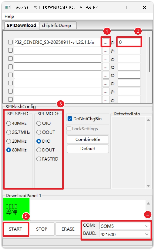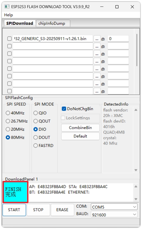 • Target port:选择 ESP32 设备对应的端口(如不确定,可拔插设备观察哪个端口消失后重新出现)。