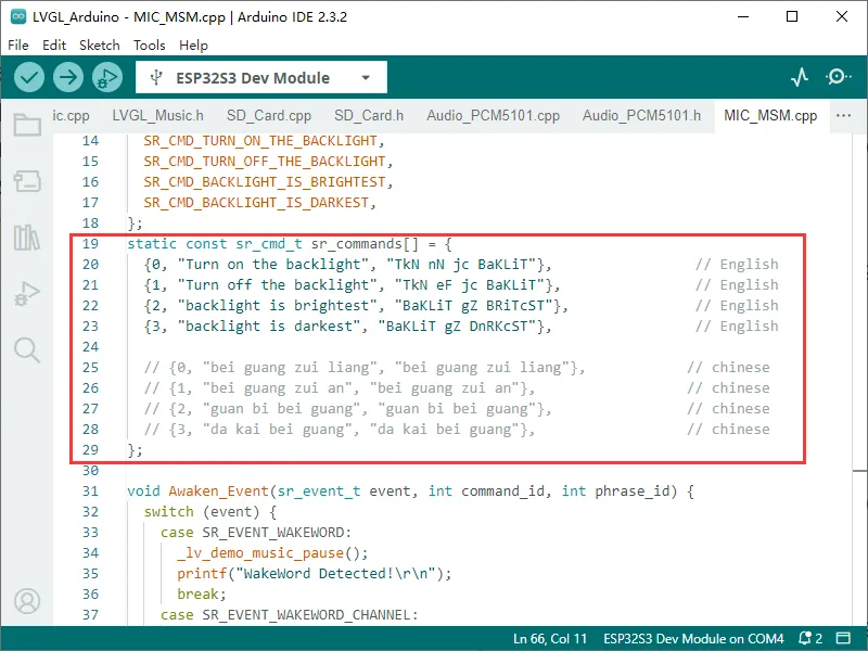 C:\Users\Waveshare\AppData\Local\Arduino15\packages\esp32\hardware\esp32\3.0.2\libraries\ESP_SR\src(其中Waveshare为电脑用户名) - 使用下载的文件替换该路径下的