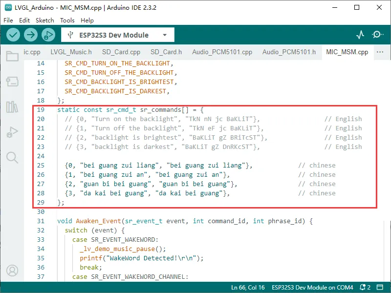 C:\Users\Waveshare\AppData\Local\Arduino15\packages\esp32\hardware\esp32\3.0.2\libraries\ESP_SR\src(其中 Waveshare 为电脑用户名) - 使用下载的文件替换该路径下的