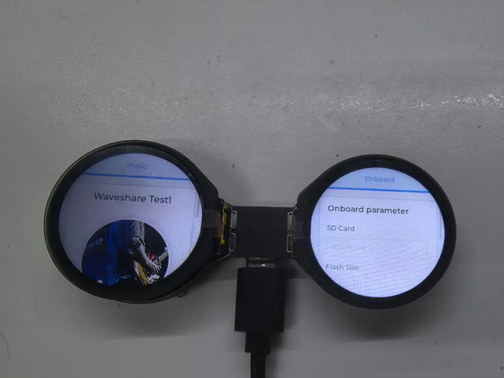 - 本示例演示了板载各个设备的功能,屏幕 2 显示 SD Card,Flash Size 等参数,屏幕 1 为音乐播放界面;另外,此示例增加语音识别功能。