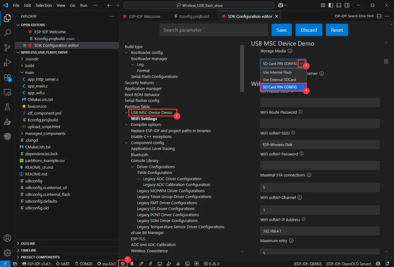 app_main():主函数,协调程序各部分初始化,包括文件存储、Wi-Fi(若配置)和 USB MSC- 调用