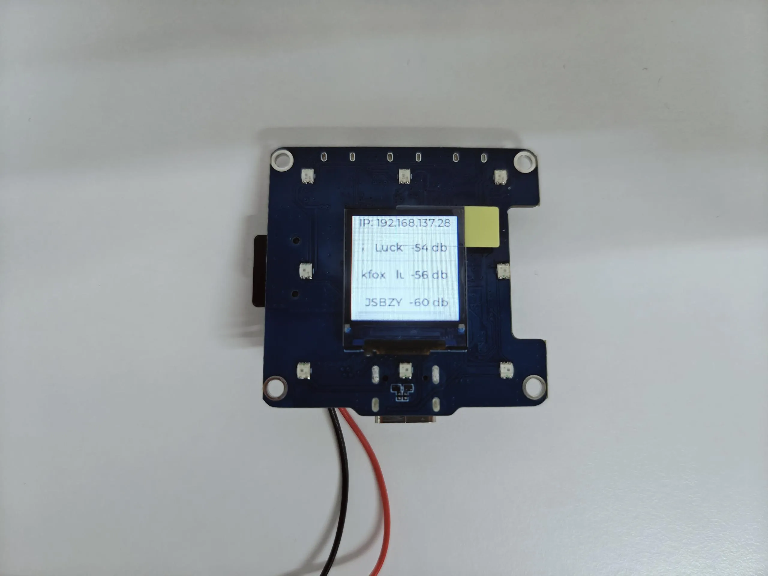 - 第三个页面显示已连接 wifi 的 ip 地址(未连接,连接失败显示 0.0.0.0)和 搜索到的 wifi