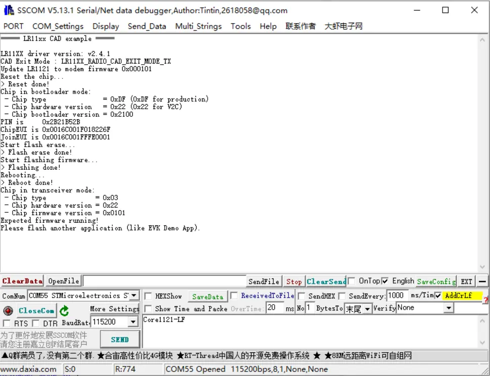 如果后续需要恢复收发器模式(非 LoRaWAN),请重新烧录 lr1121_transceiver_0101 固件。