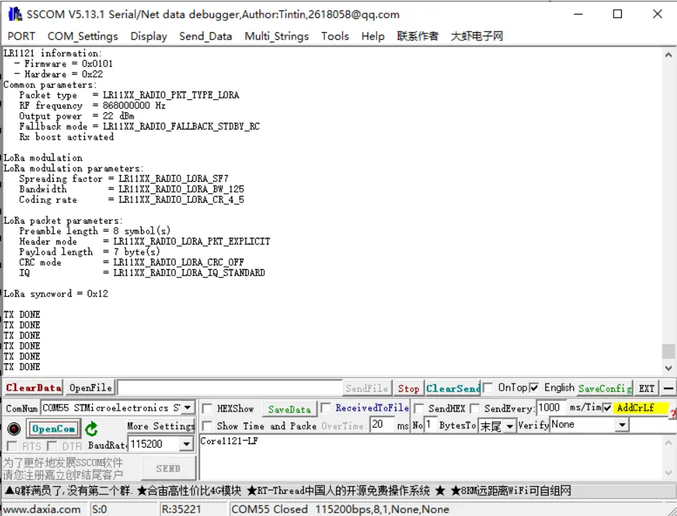 | lr1121_write | 周期性发送数据 |