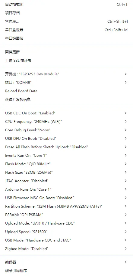 请参考 安装和配置 Arduino IDE 教程 下载安装 Arduino IDE 并添加 ESP32 支持。