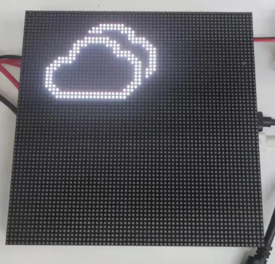 loop():按行列顺序逐点点亮像素,用于检查面板像素映射与软件配置是否一致。for (int i ...)/for (int j ...):遍历FourScanPanel的全部像素坐标。FourScanPanel->drawPixel(j, i, FourScanPanel->color565(255, 0, 0)):将当前像素点亮为红色,形成可观察的扫描轨迹。delay(30):让扫描点以较慢速度移动,便于观察实际点亮顺序。dma_display->clearScreen():整屏扫描完成后清空画面,开始下一轮测试。delay(2000):在每轮扫描结束后停留 2 秒,方便确认映射结果是否正确。
