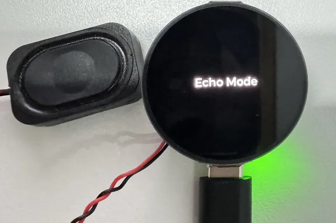 程序烧录完成后,对着麦克风说话,扬声器会自动播放录到的声音,屏幕显示如图: