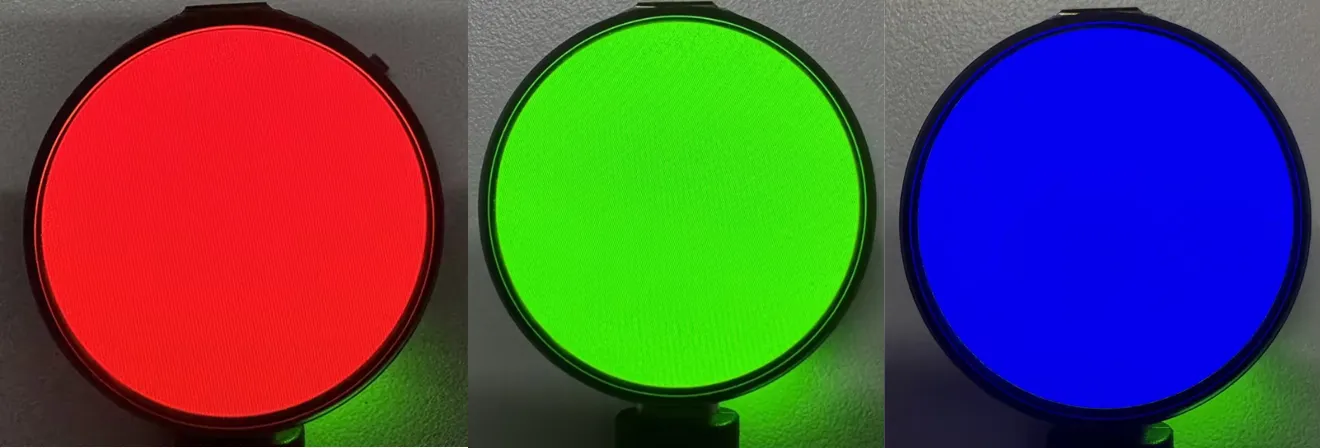 显示屏从红、绿、蓝三种颜色进行跳转(跳转间隔 1.5 秒),如图: