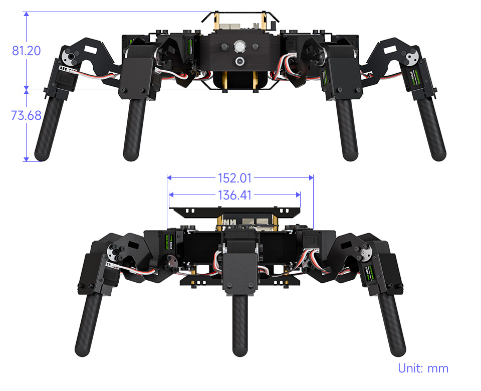 - 可以安装树莓派作为上位机通过串口与下位机通信,ESP32 作为下位机可以分担很多逆解和步态生成的算力,留给树莓派更多的资源用于高阶功能开发。