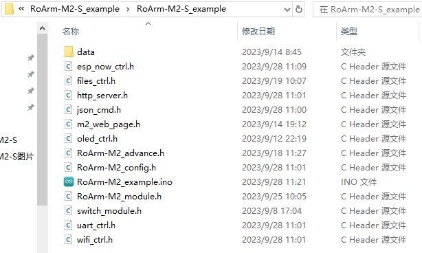 下载 HexArth 下位机开源程序,解压后双击打开 HexArth_example.ino。注意这个目录下的所有文件要在同一个文件夹下。