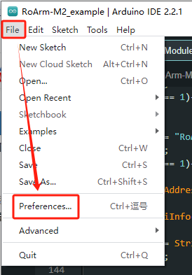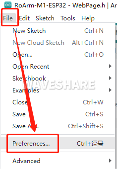 打开 Arduino IDE,点击“文件”→“首选项”。
