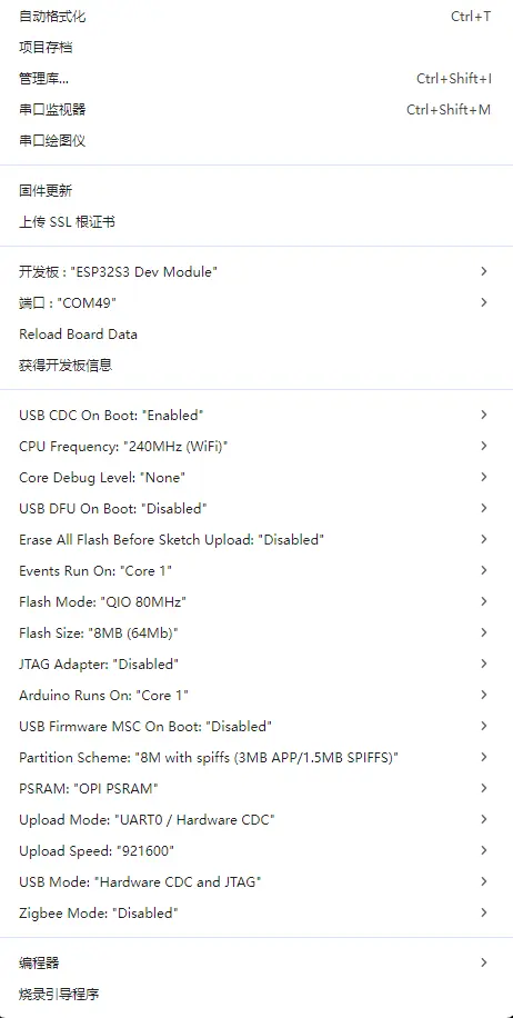 请参考 安装和配置 Arduino IDE 教程 下载安装 Arduino IDE 并添加 ESP32 支持。