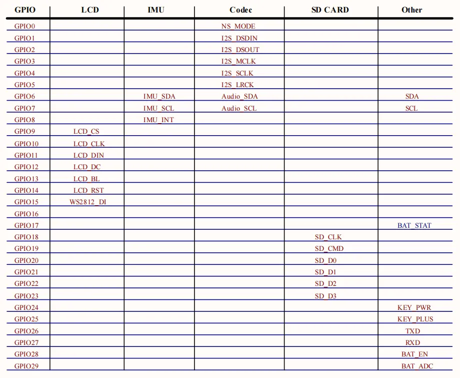 RP2350-LCD-0.85相关资料本页总览相关资料 1. 硬件资料 开发板设计文件 引脚图 原理图 2. 技术手册 数据手册 ES8311 数据手册 ES8311 用户手册 QMI8658 数据手册 WS2812B RGB LED 数据手册 3. 官方资料 树莓派官方文档 Raspberry Pi Pico 入门学习 MicroPython 编程书籍 树莓派相关书籍下载 Pico 2 原理图 Pico 2 引脚分布图 Pico 2 入门使用手册 Pico 2 C SDK 使用手册 Pico 2 Python SDK 使用手册 Pico 2 数据手册 RP2350 数据手册 RP2350 硬件设计参考手册 树莓派开源例程 树莓派官方 C/C++ 示例程序 树莓派官方 MicroPython 示例程序 4. 开发软件 pico-vscode 软件包 (百度网盘提取码:wxdz ) 字库取模软件 字库取模教程 图片取模软件 图片取模教程 5. 示例程序 RP2350-LCD-0.85 示例程序(Github 仓库) RP2350-LCD-0.85 示例程序(Gitee 仓库) 文档反馈