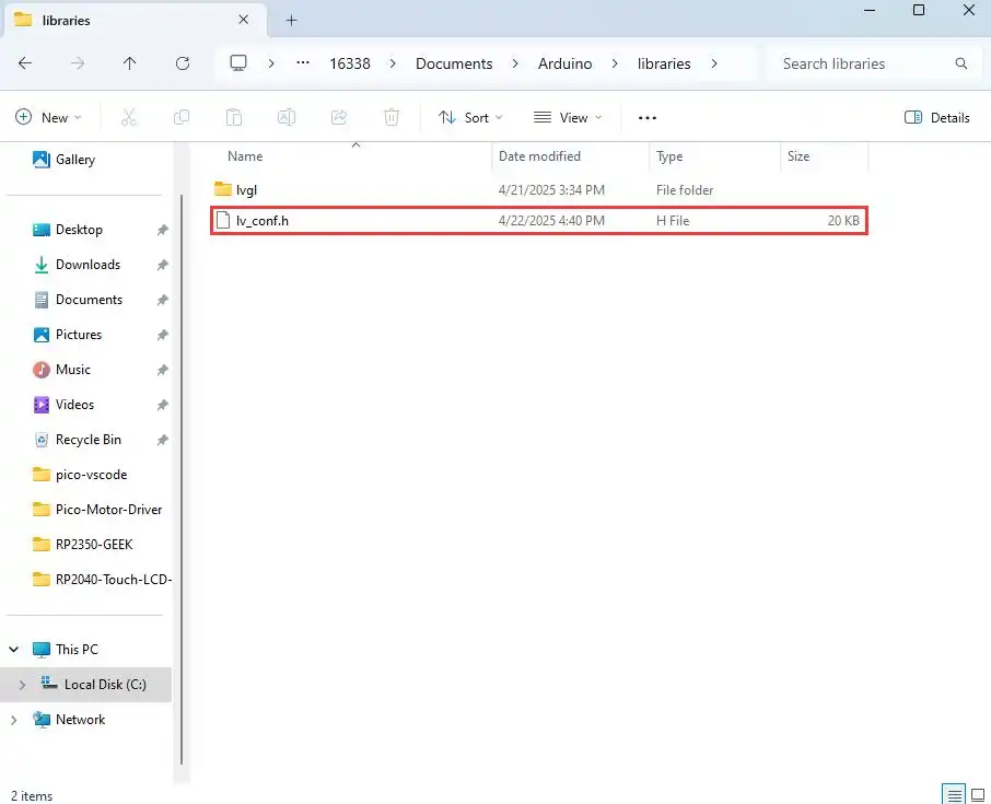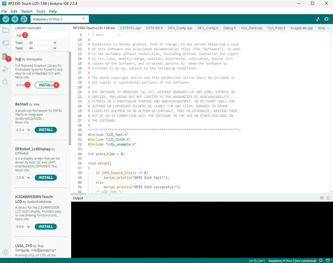 使用 VSCode 导入并编译 05_LVGL 工程,编译完成后,烧录 build 目录下 uf2 尾缀文件,或直接烧录 uf2 目录下 05_LVGL.uf2 文件进行快速验证。