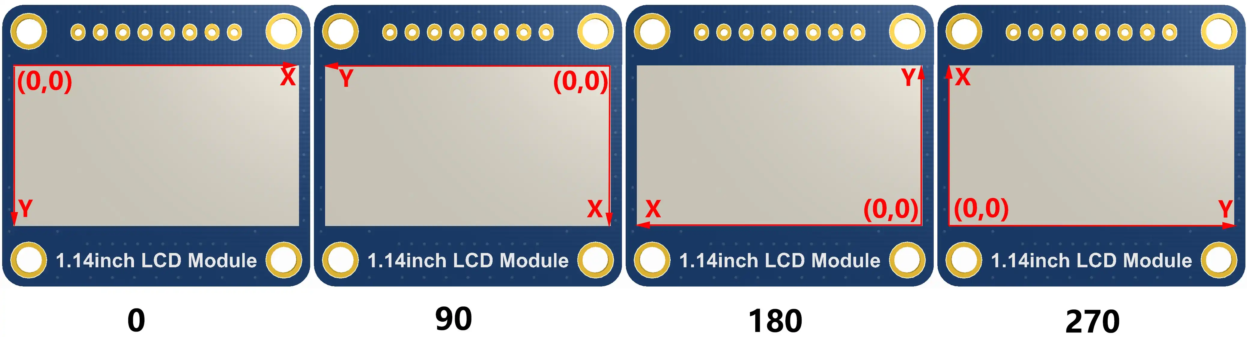 Rotate: 图像选择角度,可以选择 ROTATE_0、ROTATE_90、ROTATE_180、ROTATE_270 分别对应 0、90、180、270 度提示不同选择角度下,坐标对应起始像素点不同,这里以 1.14 为例,四张图,按顺序为 0°, 90°, 180°, 270°。仅做为参考。
