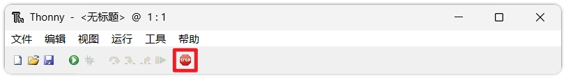 重启解释器:烧录成功后,点击工具栏上的红色 停止 按钮来重启板载解释器。