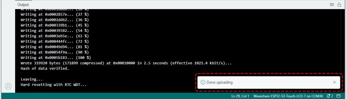 等待程序编译并上传完成即可。