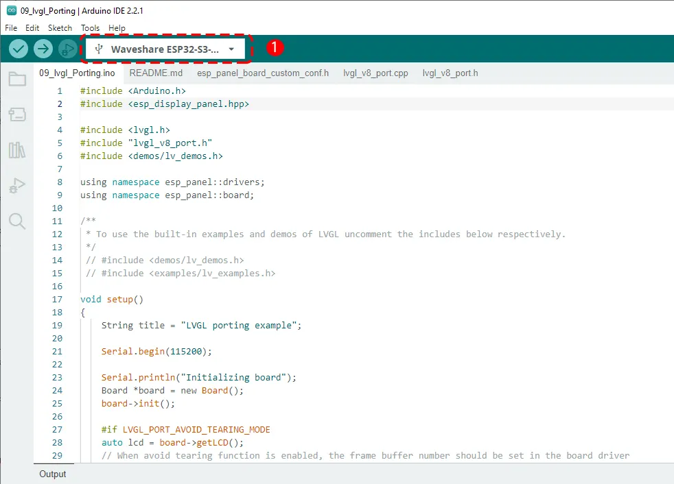 using namespace:为了简化后面写法,不用esp_panel::board::Board,直接写Board。lvgl_v8_port.h 库是什么?这个库是 ESP32 / ESP-IDF / Arduino 环境中为 LVGL v8 做的移植层,负责把 LVGL 和 ESP32-S3 硬件连接起来,例如: