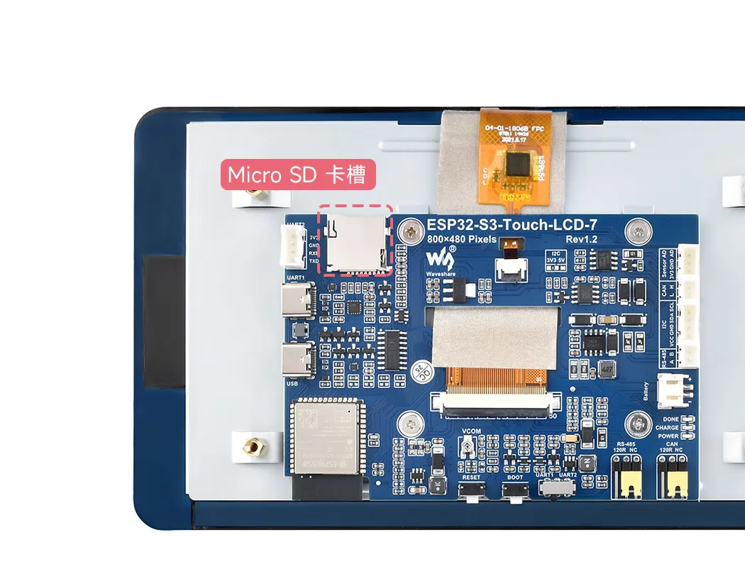 在本产品 ESP32-S3-Touch-LCD-7 当中,我们集成了一个 Micro SD 的卡槽,采用 SPI 的通信方式,可以占用更少的 GPIO 引脚。在下面的教程连接当中,我们将了解到 SD 卡的连接以及调用方式,方便用户快递验证 SD 卡的功能。
