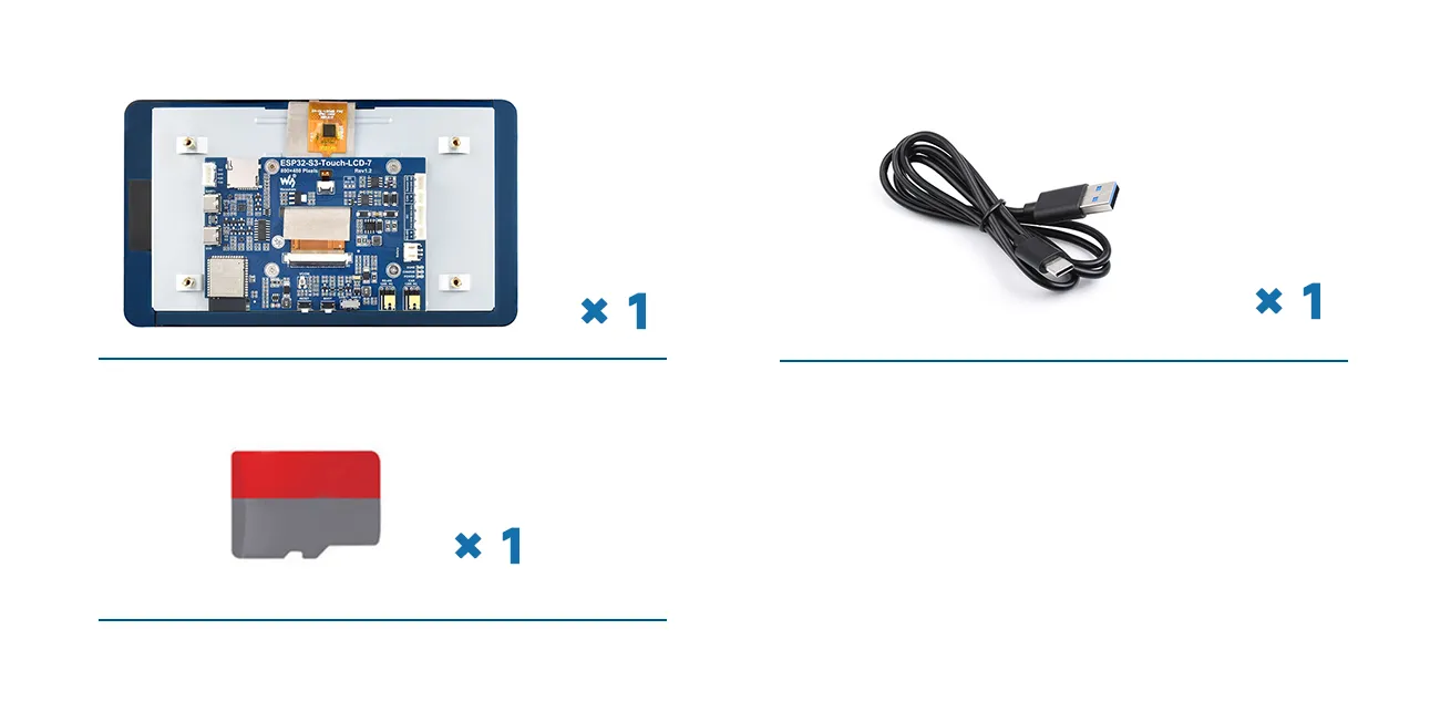 为了将对应的代码上传到 ESP32-S3,需要用 Type-C 转 Type-A 的线将 ESP32-S3-Touch-LCD-7 的 USB 口接到电脑的 USB 口,并且将格式化好的 SD 卡插到 SD 卡槽上: